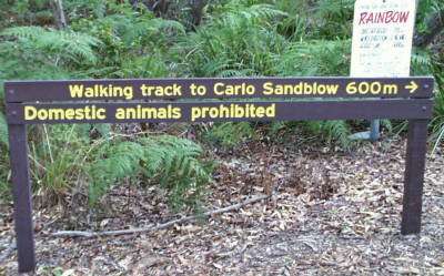 von dem Denkmal. Und das steht mitten in Rainbow Beach in der Naehe des